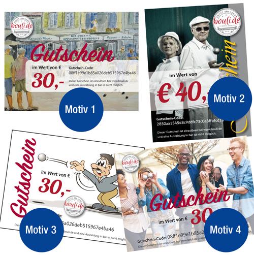 Für jedes Fest die perfekte Idee: Der Bouli-Geschenkgutschein mit persönlicher Karte. Wir versenden Gutscheine mit deinem Wunschtext und einem beliebigen Wert. Eigene Motive kannst du uns per Email senden oder über das unten aufgeführte Formular zusenden.