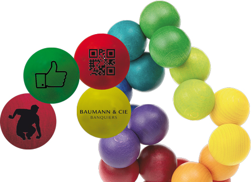 • 1-farbiger oder 2-farbiger Aufdruck oder gelasert mit bis zu 20 mm Durchmesser